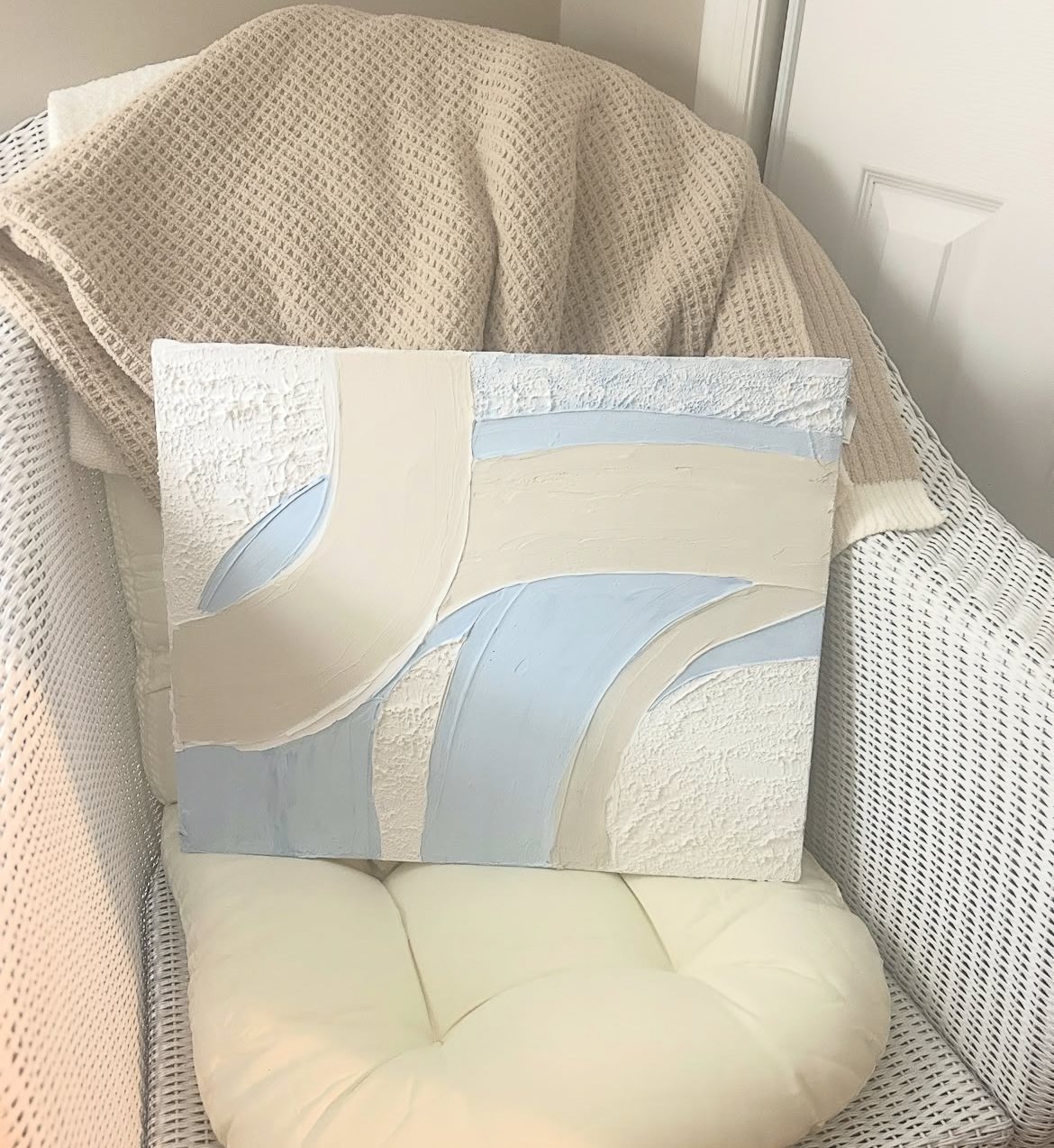 This is a 16x20 textured art original made with acrylic paint and modeling paste. Sides are painted… no frame needed ….can be framed with additional cost